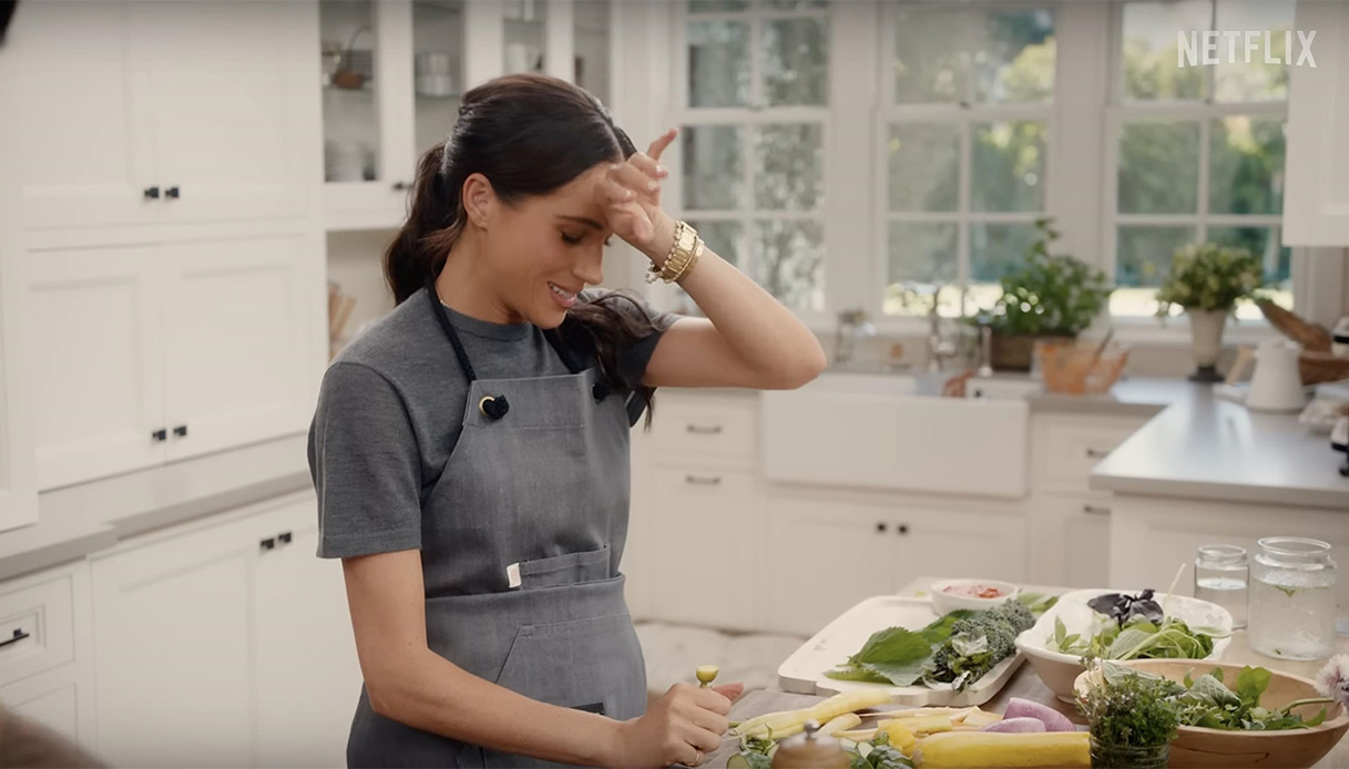 Meghan Markle non sa più cosa inventarsi per pubblicizzare la sua nuova serie su Netflix, in uscita il prossimo 4 marzo, dal titolo Meghan, with love. Il format non sembra così innovativo: la Duchessa del Sussex dà consigli su ricette, giardinaggio e tutto quello che occorre per stare bene a casa propria. Ma a dir la verità è poco credibile nei panni della perfetta casalinga, soprattutto se ai fornelli indossa bracciali, diamanti e orologio d’oro.