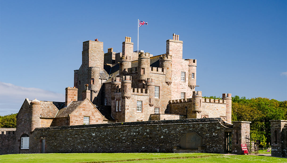Fu costruito tra il 1566 e il 1572 sulle terre di Mey che appartenevano ai vescovi di Caithness. Nel 1952 la Regina Madre, rimasta vedova del marito Giorgio VI, decise di acquistarlo. La cifra esatta che pagò per il Castello è sconosciuta. Alcuni sostengono che glielo abbiano regalato, altri che lo pagò la cifra simbolica di 1 sterlina, altri che lo acquistò per 100 sterline.