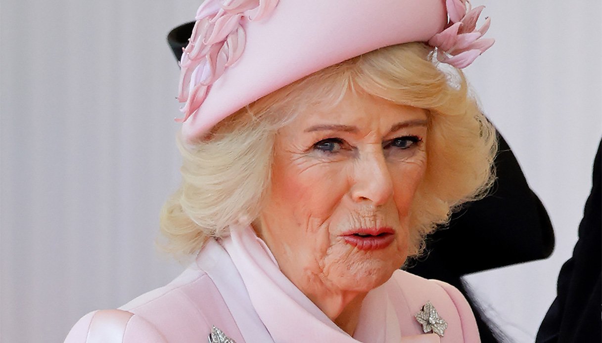 Memore dei completi color pastello della Regina Elisabetta II, Camilla ha accolto i suoi ospiti con un look rosa baby o confetto. Un outfit monocolore che sembrava uscito dal guardaroba di Buckingham Palace della defunta Sovrana.