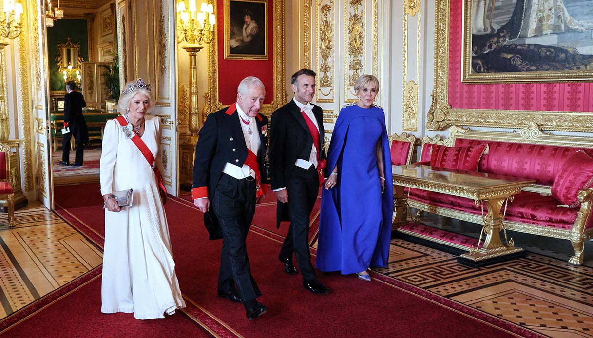 Il momento più glamour e atteso della visita di Stato di Brigitte ed Emmanuel Macron in Inghilterra è stato il banchetto di Stato che Re Carlo e Camilla hanno offerto loro al Castello di Windsor alla presenza di William e Kate Middleton che ha “sfidato” la Première Dame con un abito molto simile al suo. Ma le tre prime donne del gala, Kate, Brigitte e Camilla, si sono accordate sul look per formare coi loro vestiti la bandiera francese. Ma procediamo con ordine.