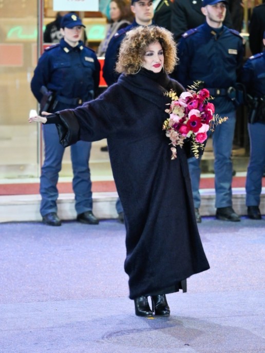 Marcella Bella ha calcato il Green Carpet rimanendo fedele al suo stile iconico, ma questa volta senza quel tocco di originalità che ci saremmo aspettati. Ha scelto un cappotto a portafoglio nero, un classico intramontabile che, però, in questa occasione è risultato fin troppo prevedibile e privo di carattere.