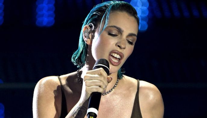 Nella seconda serata del festival canoro, infatti, la cantante ha sfoggiato un wet hair look, visto che i suoi capelli, grazie al gel, sembravano bagnati ed erano completamente tirati indietro. La cantante ha riportato lo style bagnato anche sulla sua pelle, grazie all’utilizzo di una crema corpo lucente.