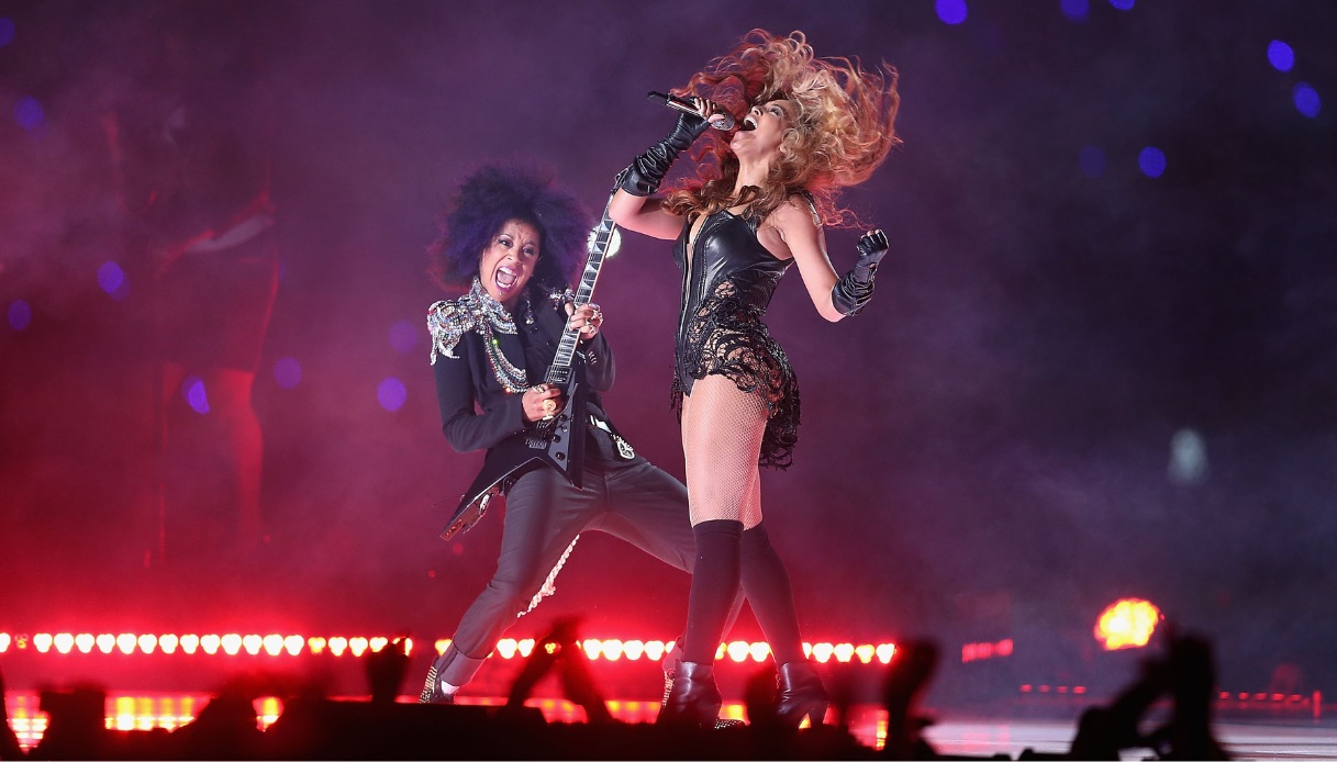 Se c’è una popstar nata per dominare il palco del Super Bowl, quella è Beyoncé. La sua esibizione nel 2013 ha letteralmente fatto tremare il palco: un ingresso da diva, una voce inarrestabile e la reunion delle Destiny’s Child con Kelly Rowland e Michelle Williams. Il suo look? Un body in pelle nera con dettagli in pizzo, firmato Rubin Singer, che le donava un’aura da supereroina.