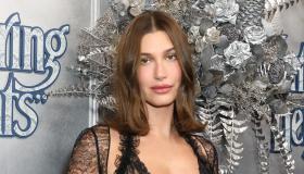 Hailey Bieber incanta Sydney alla première di Cime Tempestose con un naked dress in pizzo nero ultra raffinato: lingerie a vista, maniche a campana e silhouette scolpita