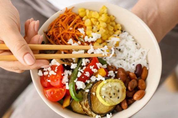 La dieta mediterranea, ricca di legumi, cereali, vegetali senza tralasciare le proteine della carne, è ideale per mantenere il peso forma.