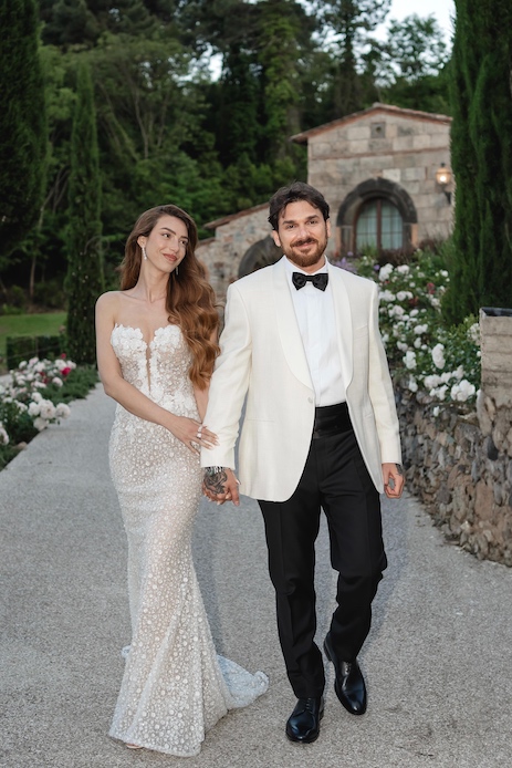 A fare da cornice a questo sogno sartoriale, una cerimonia intima immersa nel verde delle colline pisane. In prima fila, ovviamente, la piccola Allegra, la figlia di Arianna e Andrea, nata nel febbraio del 2024 e diventata già protagonista nel suo mini-abito bianco con coroncina floreale. È stata lei a portare le fedi, dando ufficialmente inizio alla favola.