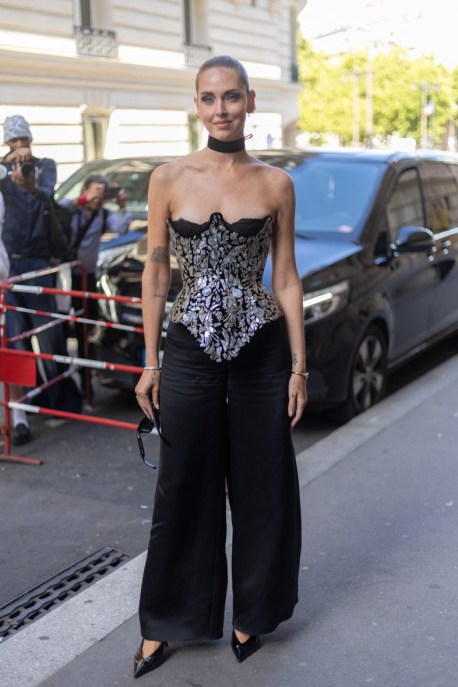 Chiara Ferragni da Ashi Studio in bustier in broccato e pantaloni culotte: il look d’alta moda nel dettaglio