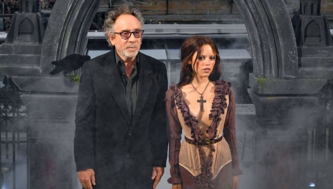 Alla sua maniera gotica ma fatalmente sensuale, Jenna Ortega ha letteralmente stregato il pubblico Parigino e Tim Burton stesso optando, questa volta, per uno strepitoso abito firmato Vivienne Westwood by Andreas Kronthaler: la creazione, appartenente alla collezione fall/winter 2025, giocava con i toni del prugna e del nude, incarnato dalle trasparenze piuttosto spiccate della struttura bustier.