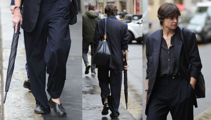 Non solo il nuovo taglio di capelli, ma anche l’outfit di Kasia Smutniak ha fatto girare la testa. Durante la sua passeggiata a Milano, Kasia ha sfoggiato un completo blu in stile maschile, abbinato a una camicia di seta nera con bottoni a contrasto e pantaloni a vita alta con due pence sul davanti. Al polso, un elegante orologio Cartier, e ai piedi delle ballerine Jil Sander. La borsa Loro Piana completava il look, aggiungendo un tocco di lusso discreto.