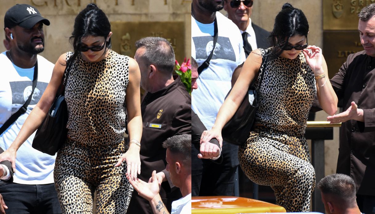 Il completo scelto da Kylie – un top smanicato a girocollo e un paio di pantaloni a vita bassa con fondo svasato – è in perfetto stile Y2K e richiama le vibe delle icone pop dei primi anni Duemila, ma con l’allure moderna e raffinata che lei riesce sempre a portare con sé. Il look, total leopard print, sembra uscito direttamente dal guardaroba di una it-girl che non ha paura di osare.