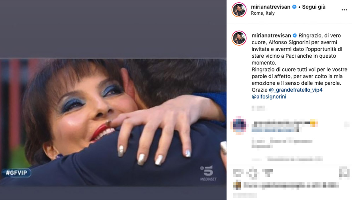 Miriana Trevisan era persino entrata nella casa del GF Vip per sorprendere Pago: l’ex marito, ancora innamoratissimo di Serena Enardu, si era da poco confrontato con quest’ultima e si sentiva confuso e turbato. Così, la Trevisan lo aveva incoraggiato a seguire il suo cuore.
