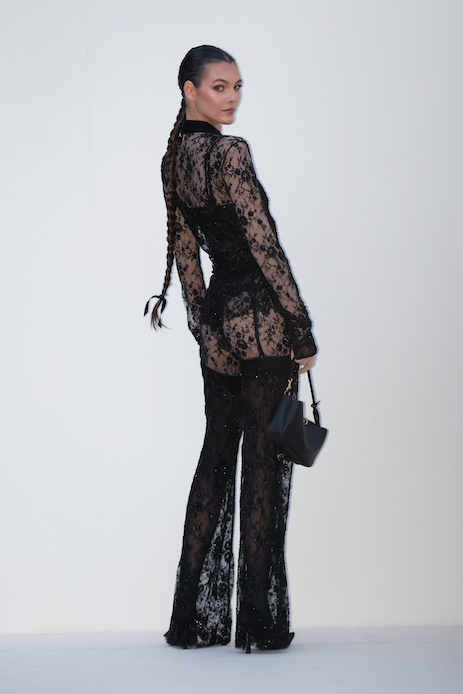 Alla Paris Fashion Week, tra giochi di silhouette, richiami sartoriali e sovversioni di stile, è stata Vittoria Ceretti a prendersi la scena. La top model italiana, icona di eleganza contemporanea, ha incantato con un look audace che ha mescolato sensualità e potenza, trasformandola in una moderna Lara Croft della moda. Il total black di pizzo trasparente ha esaltato la sua silhouette slanciata, confermando ancora una volta il suo status di musa indiscussa delle passerelle.