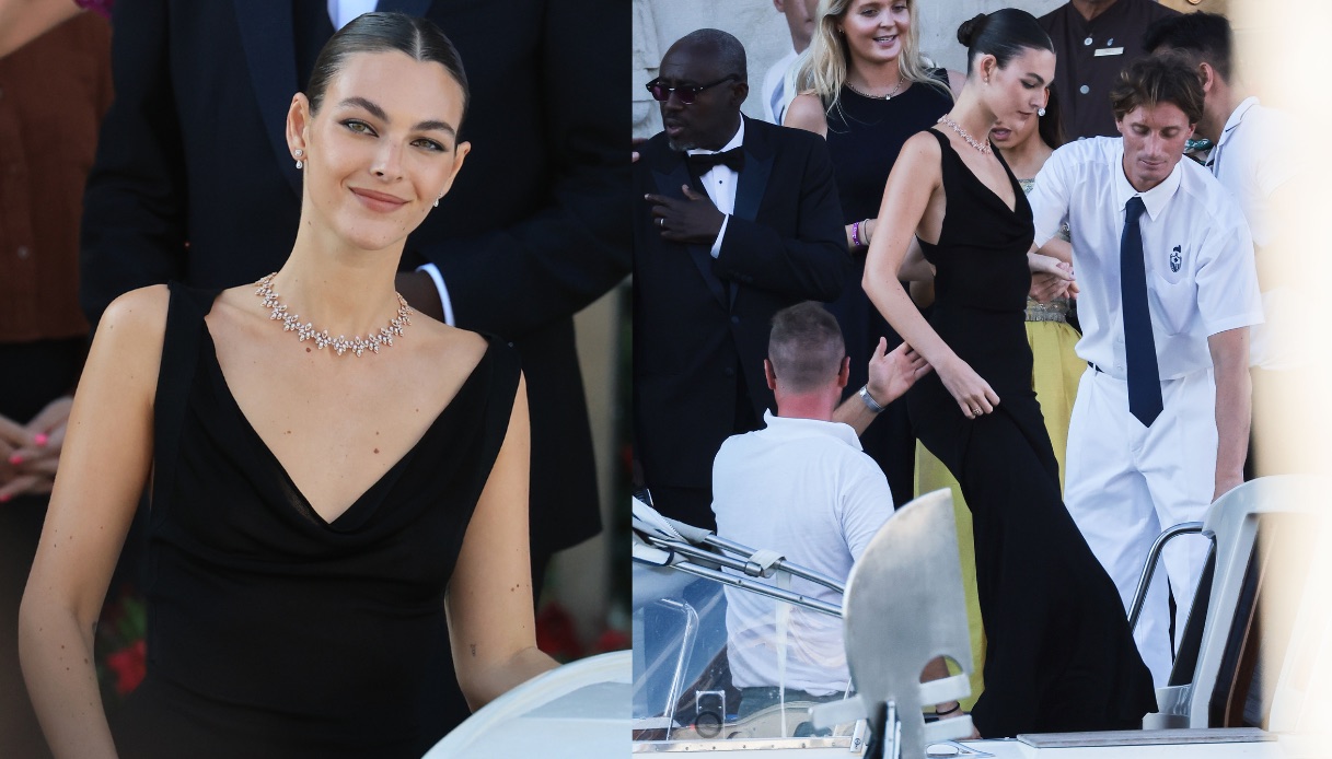 Ma è quando il sole è calato e i festeggiamenti sono entrati nel vivo che Vittoria Ceretti ha dato il meglio di sé. Al pre-wedding party, ha incantato con un lungo abito nero, elegantissimo e dal taglio scolpito, con scollo morbido e spalline ampie, abbinato a un collier di diamanti degno di una vera star. I capelli raccolti con riga centrale e make-up essenziale hanno reso l’ensemble ancora più raffinato: Vittoria sembrava uscita da una pellicola hollywoodiana in bianco e nero, ma con l’appeal ultra moderno che solo una top model della sua generazione può avere.